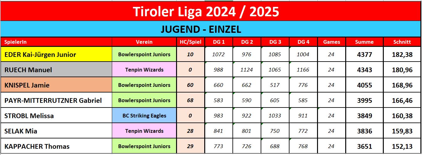 Tiroler Liga JUGEND EINZEL 2024/25 Vorheriger Beitrag: All-Events Damen 2024/25 Zurück Nächster Beitrag: Tiroler Liga Mixed-3er 2024/25 Weiter